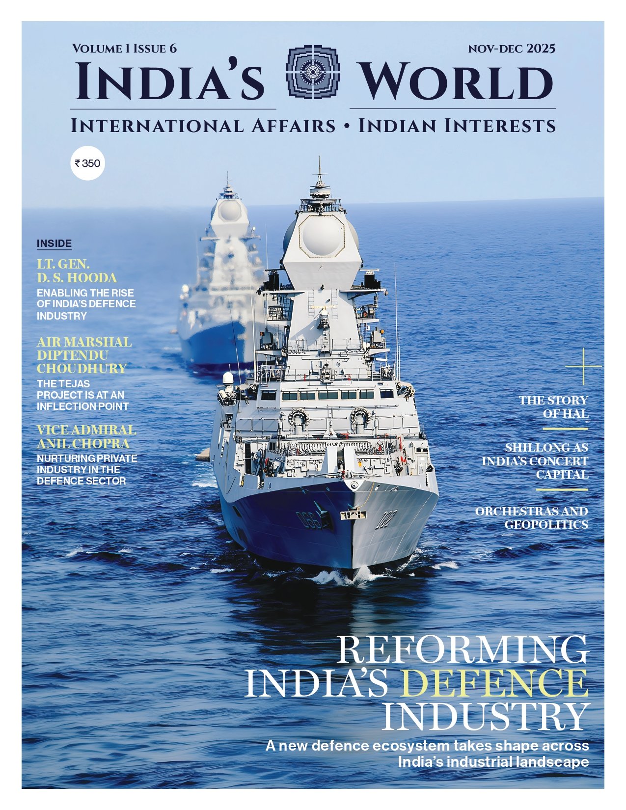 India’s World is a leading foreign affairs magazine that examines global developments from an Indian perspective. This special issue, Reforming India’s Defence Industry, explores the country’s most ambitious effort yet to transform its defence sector—energised by policies like Atmanirbharta and the drive to make India a major defence exporter.